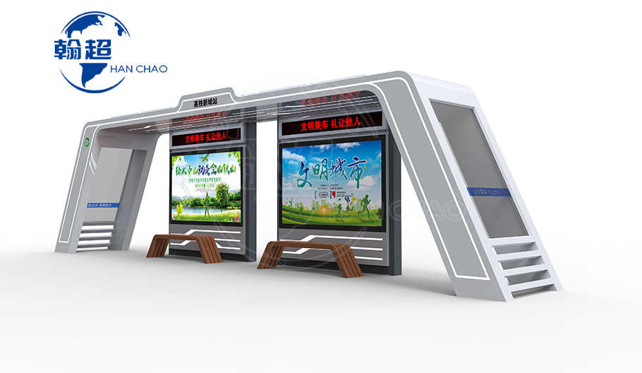 2022年新款公交候车亭款式展现。候车亭产品用户可根据实践需求选用材料、颜色及配件,个性化定制外观造型。翰超科技是专业的候车亭厂家,公司氟碳漆候车亭不褪色、不掉色,结构
