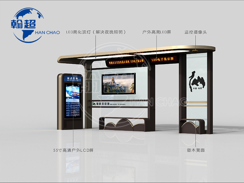智慧城市候车亭是城市发展的体现,能够给市民提供更好的服务,江苏翰超科技作为候车亭生产制作厂家,推荐当下几款智慧候车亭。第一款:大型智能候车亭,内含两个大广告灯箱、led实时信息滚动、液晶显示屏更新新闻资讯。第二款:智能公交站台,出了造型独特之外,拥有一个大广告灯箱,电子站牌,并配有垃圾箱和WiFi。第三款: