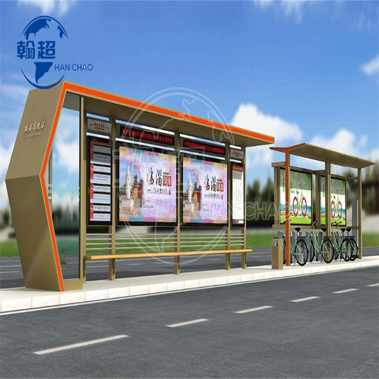 跟着时刻的推移和经济的开展,城市建设越来越人性化。跟着公交线路越来越多,一个公交站会有近十个站点,“光杆站牌”已经不能满意城市开展的需要。不锈钢框架的公交站牌亭安装在舞台上,亭内设有避雨棚,解决了候车时晴天暴晒、雨天淋湿的问题。